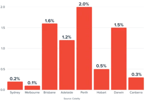 Perth Adelaide and Brisbane continued to see sustained growth, only outpaced by the smaller city of Darwin. However, there is a notable drop when compared to December. Brisbane’s growth dropped from 2.0% to 1.6%, while Perth and Adelaide also slowed down.
